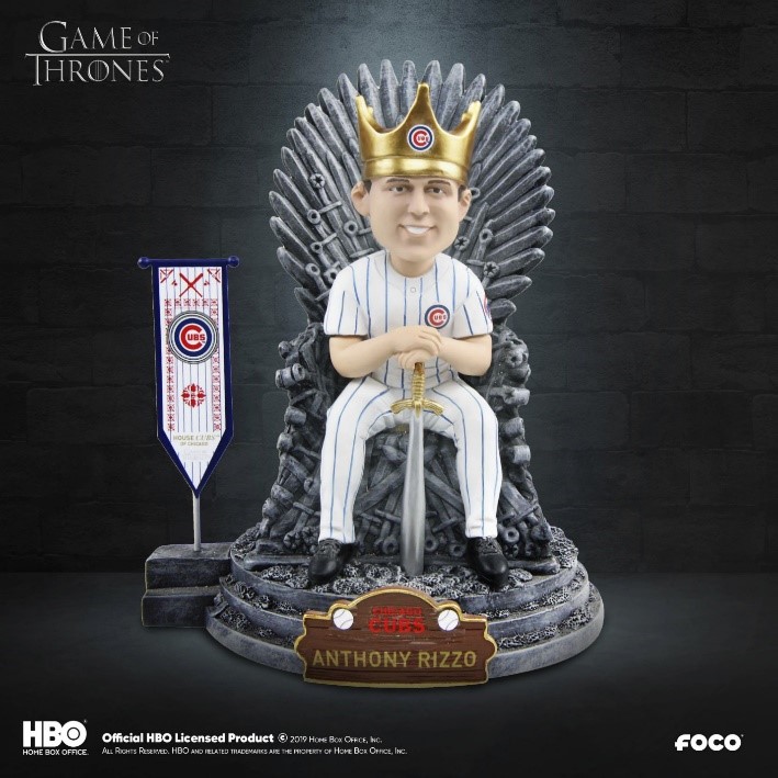 Bobbleheads have been a popular promotional product for baseball games for many years now but putting the bobblehead on the iron throne is a new twist that fans are sure to love.